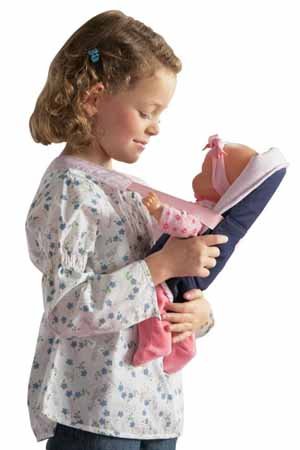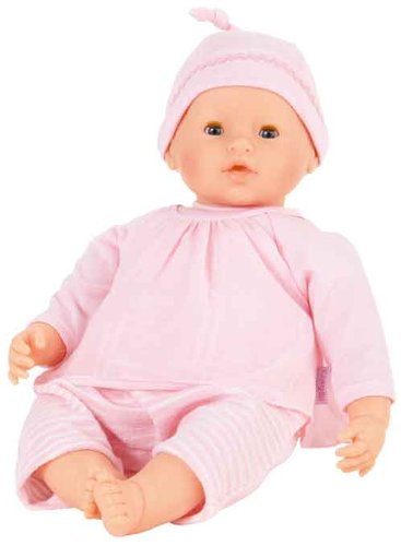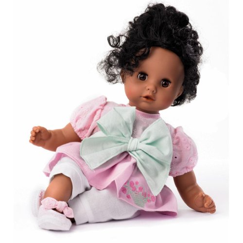 The Gotz African American Muffin Play Doll from Gotz is a 13" doll with a soft body and bean bag bottom. Features brown open-close eyes, detailed pink outfit, designed so children can easily dress and undress doll, shoes and rooted hair. Doll is machine washable on cold and delicate settings.